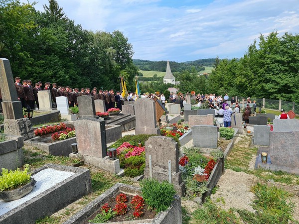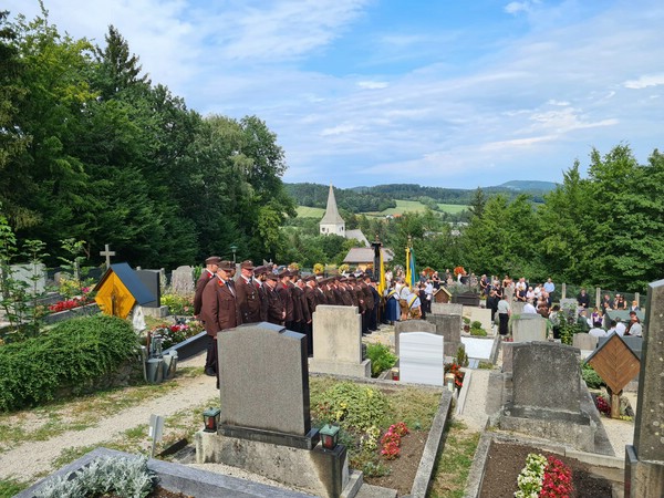 Josef Halbwax wurde am 23. Juli 2022 im Kreise seiner Familie, einer großen Anzahl an Trauergästen und mit Abordnungen von Feuerwehr, Musikkapelle, Kameradschaftsbund und Bauernbund am Ortsfiedhof Kaumberg zur letzten Ruhe geleitet.