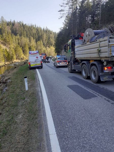 Am 10.05.2021 um 17:07 Uhr wurde die FF St. Aegyd-Markt zu einer Motorradbergung auf die B21, das St. Aegyder Gscheid alarmiert. Ein Motorradlenker aus dem Bezirk Neunkirchen, welcher alleine unterwegs war kam in einer Linkskurve zu Sturz.