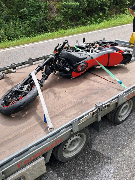 Der Motorradfahrer wurde dabei schwer verletzt und mit dem Notarzthubschrauber ins Krankenhaus geflogen. Die 2 Pkw-Insassen kamen mit dem Schrecken davon, wurden aber zur Kontrolle in das nächstgelegene Krankenhaus gebracht. Das schwer beschädigte Motorrad wurde durch die FF St. Aegyd abtransportiert. Der Pkw wurde gesichert abgestellt. Abschließend wurde die Straße gereinigt und Fahrzeugteile beseitigt. Nach ca. 1 Stunde konnte durch die Polizei die Fahrbahn wieder freigegeben werden.
