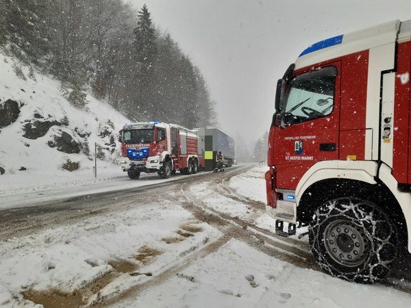 Am Donnerstag, den 26.03.2026, um 10:10 Uhr wurde die FF St. Aegyd zu einer Lkw-Bergung auf die B23- Lahnsattel alarmiert.