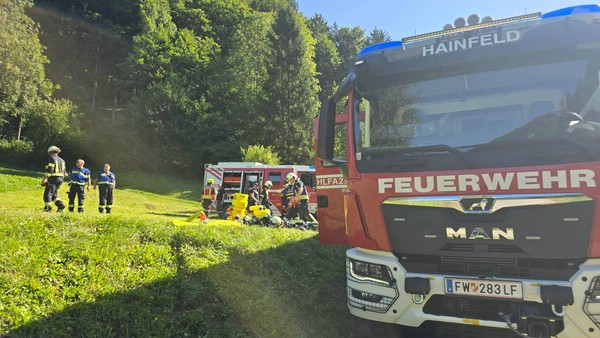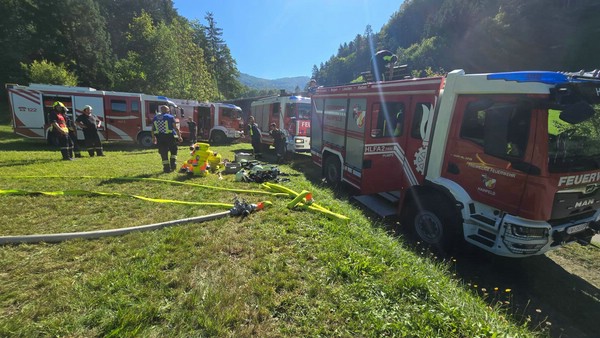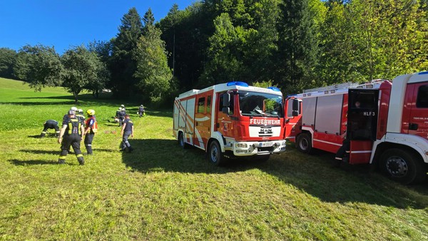 "Waldbrand in einem mit Munition belasteten Gebiet, mehrere Objekte gefährdet", so die Übungsannahme am 20. September 2025 im Wobach, Gemeindegebiet St. Veit an der Gölsen. Die örtliche Feuerwehr alarmierte zuerst die Wehren des Unterabschnittes und danach kamen alle drei Züge des Katastrophen-Hilfsdienstes (KHD) des Bezirkes zum Einsatz.