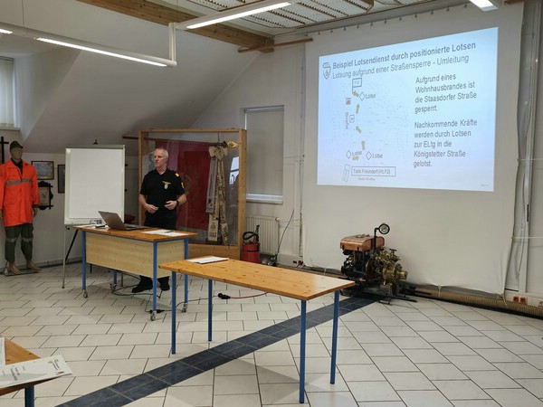 Am 22.11.2025 fand zum ersten Mal das neu gestaltete Ausbildungsmodul "Arbeiten in der Einsatzleitung" statt. Die Teilnehmenden lernen dabei nach dem Abschluss der Truppmannausbildung und dem erfolgreichen Absolvieren eines e-Learningmoduls die verschiedenen Aufgaben innerhalb einer Einsatzleitung kennen.