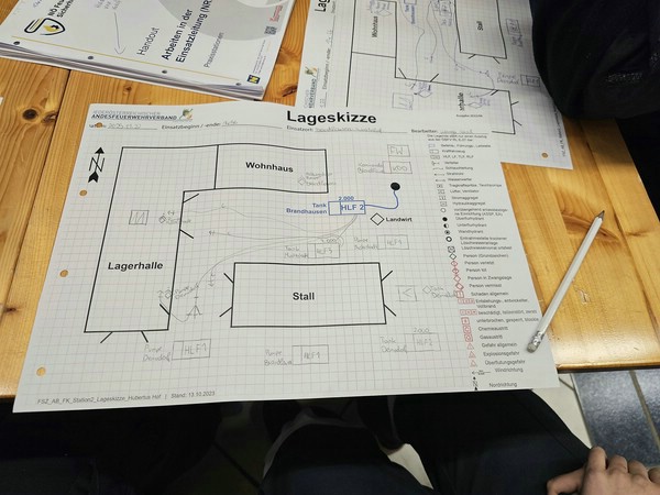 Modulleiter BR Walter Weninger konnte dazu 28 interessierte Feuerwehrmitglieder aus dem Bezirk begrüßen, welche in den ersten Unterrichtseinheiten über die Grundlagen der Einsatzführung, die Hilfsmittel in der Einsatzleitung sowie die Kartenkunde und Lotsendienst informiert wurden. Danach erfolgte eine Aufteilung auf vier Stationen, die allesamt nacheinander absolviert und in Kleingruppen abgehandelt wurden. In den einzelnen Stationen wurden den Teilnehmenden die einzelnen Funktionen innerhalb der Einsatzleitung, nämlich der Leiter der Einsatzleitung, der Lageführer, der Einsatzschreiber und der Funker/ Melder in der Einsatzleitung anhand eines fiktiven Traktorbrandes in der Lagerhalle eines landwirtschafltichen Anwesens näher gebracht.